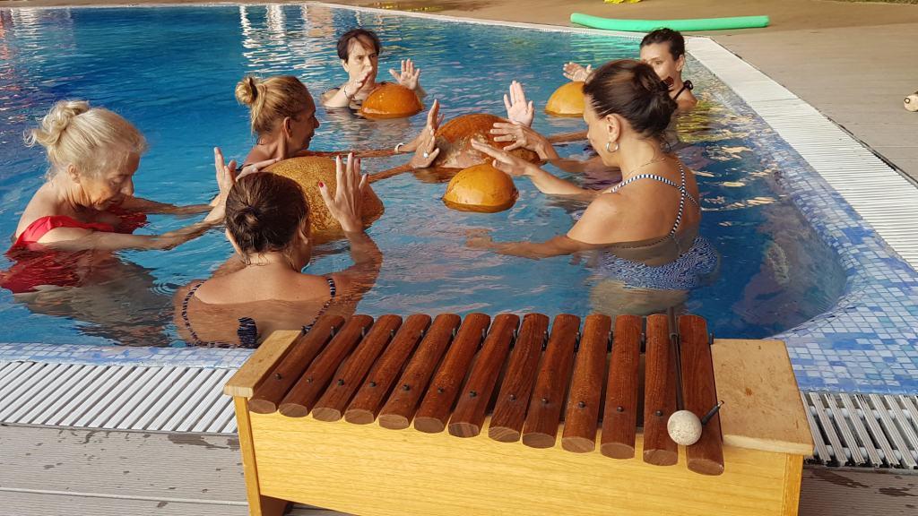 Il suono, il movimento e il contatto con l’acqua creano un’atmosfera gioiosa e giocosa, dissolvono le tensioni e i blocchi fisici ed emotivi e rafforzano i meccanismi di auto-guarigione.