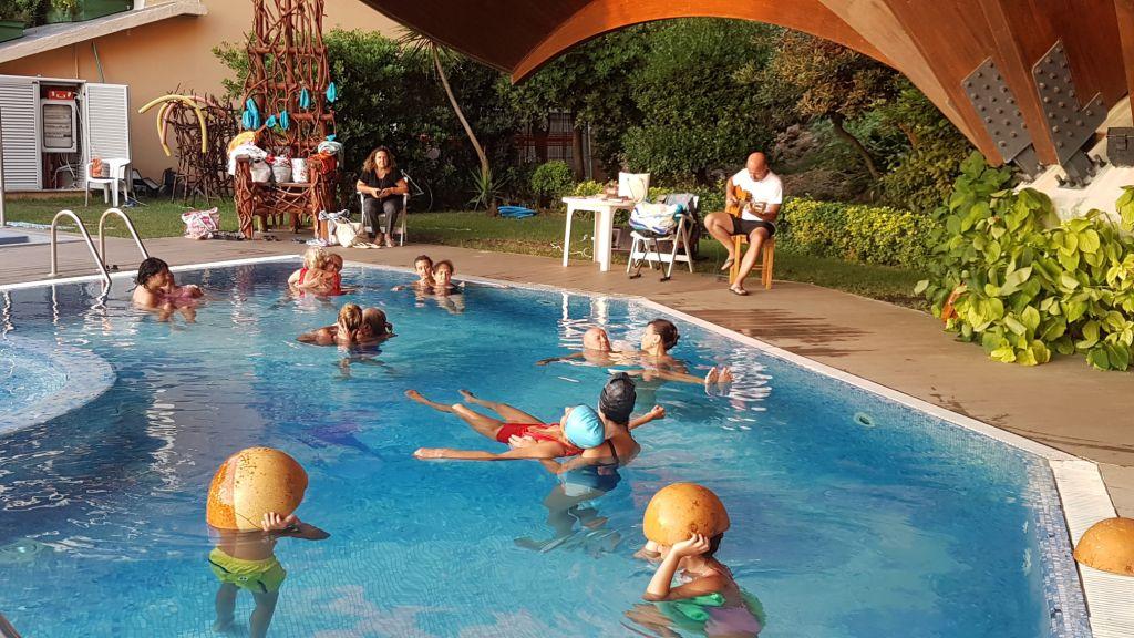 Con il laboratorio Bagno di suoni, condotto da Silvia Riccio, vivrete un’esperienza di musicoterapia in acqua in cui suono, vibrazione, musica, movimento, corpo e voce si uniscono all’acqua e creano un’armonia di relax e benessere psico-fisico.